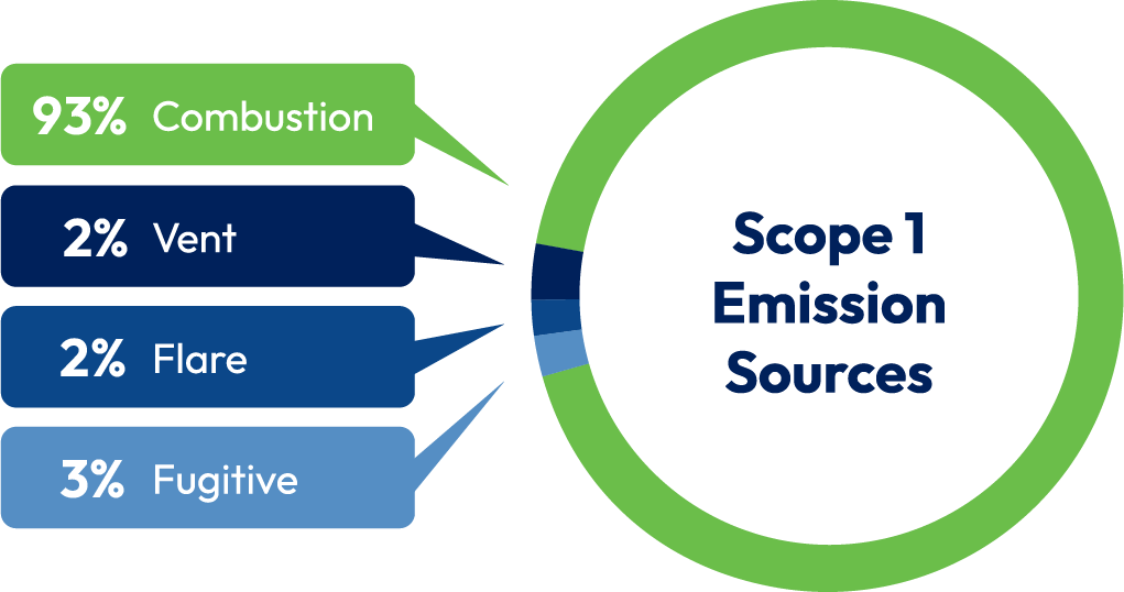 We measure and manage our scope 1, scope 2 and methane emissions. Our emissions profile is almost entirely generated from scope 1 emissions.